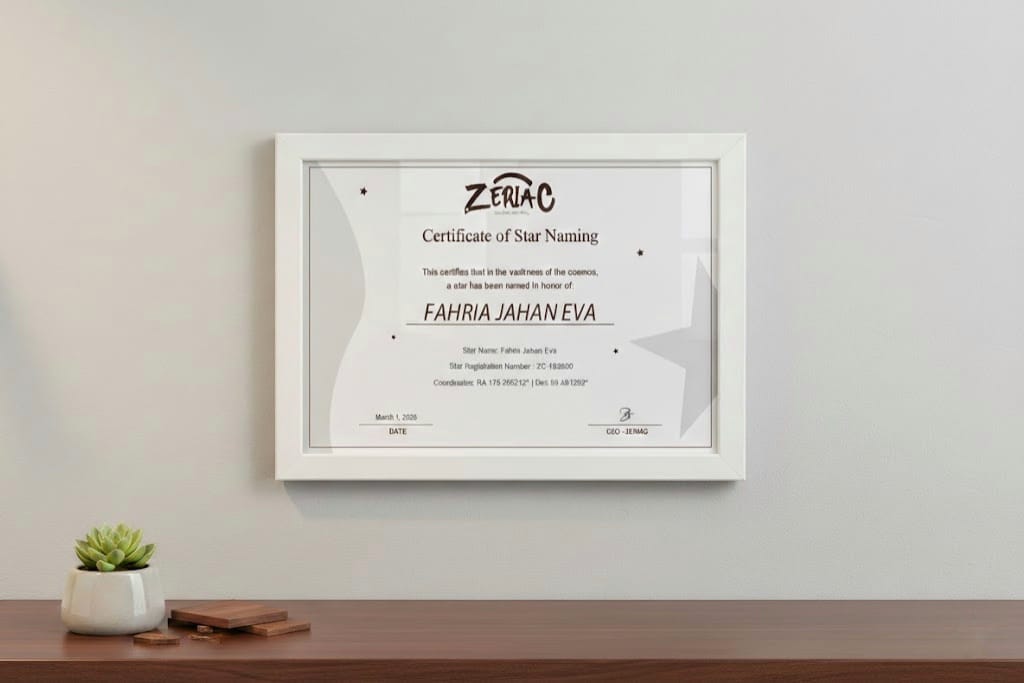 With ZERIAC’s HER PACK, you can now register a star in your name or the name of your loved one. This exclusive package includes:
